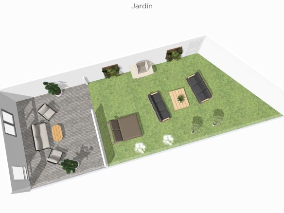 En planta calle, se encuentra el recibidor, un luminoso salón, cocina tipo office, independiente y completa de 17 m2 con acceso al porche y patio, el cual tiene una entrada independiente por la parte trasera y además tenemos un ase en esa misma planta.